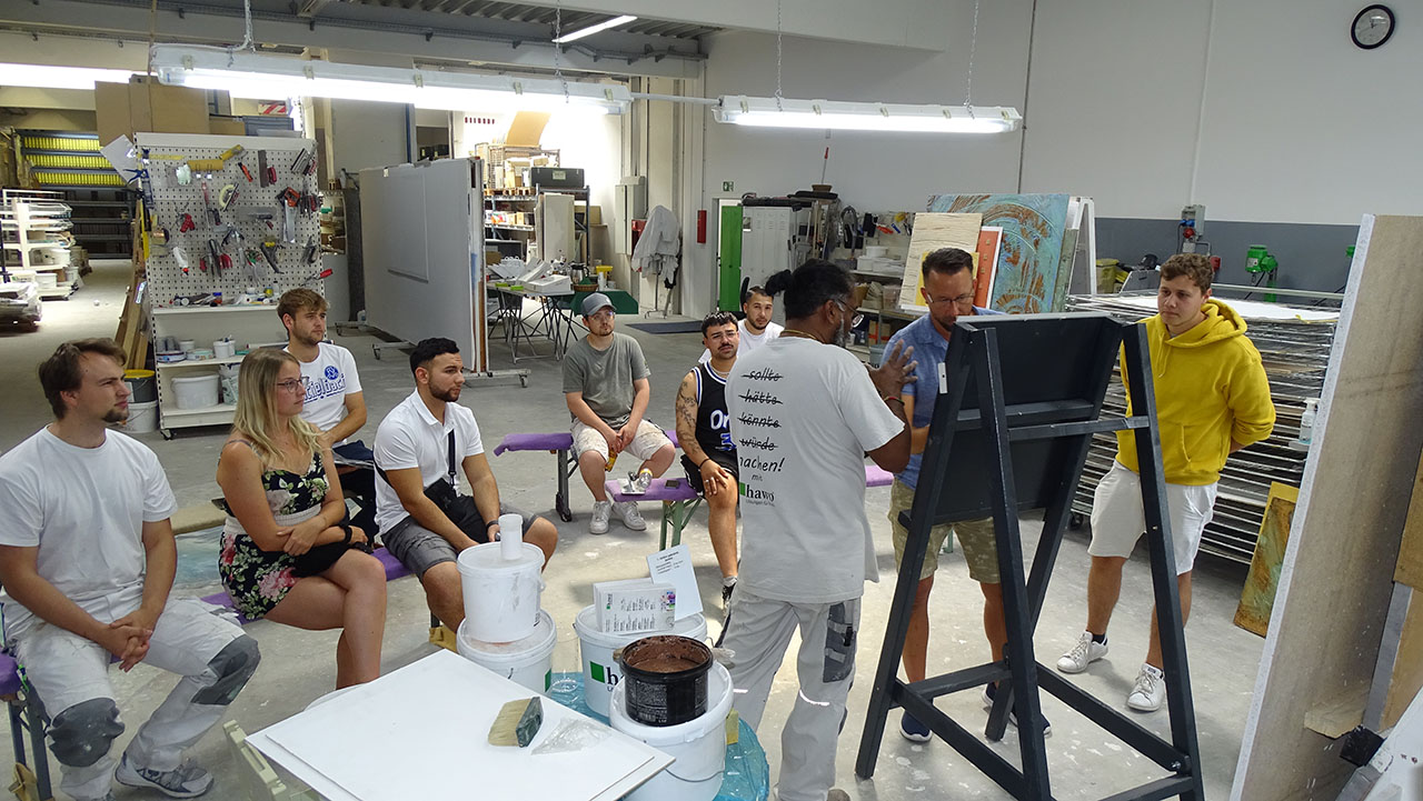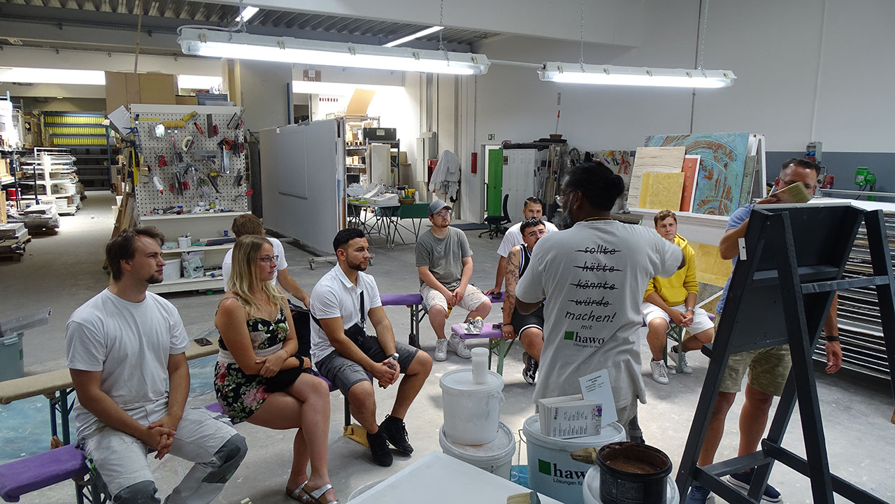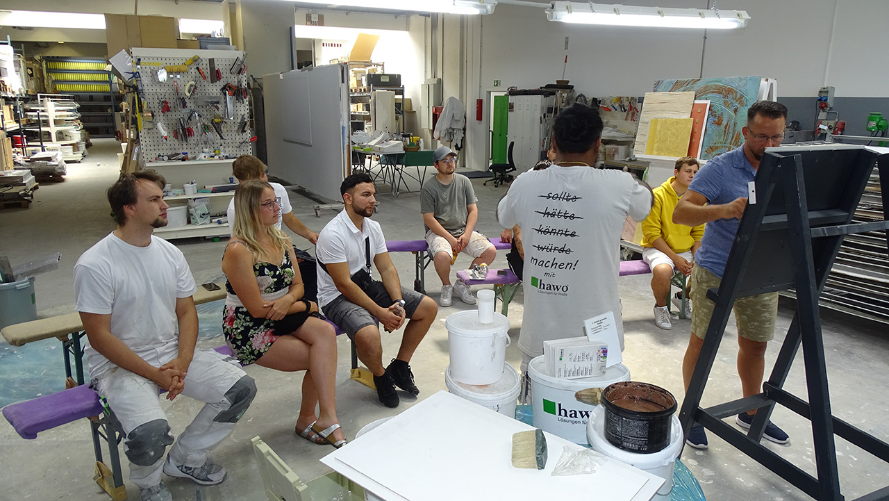Am Montag, den 12.06.2023 schulten sich die Malermeisterschüler – Meisterkurs Schwerpunkt Gestaltung und Instandhaltung bei hawo.