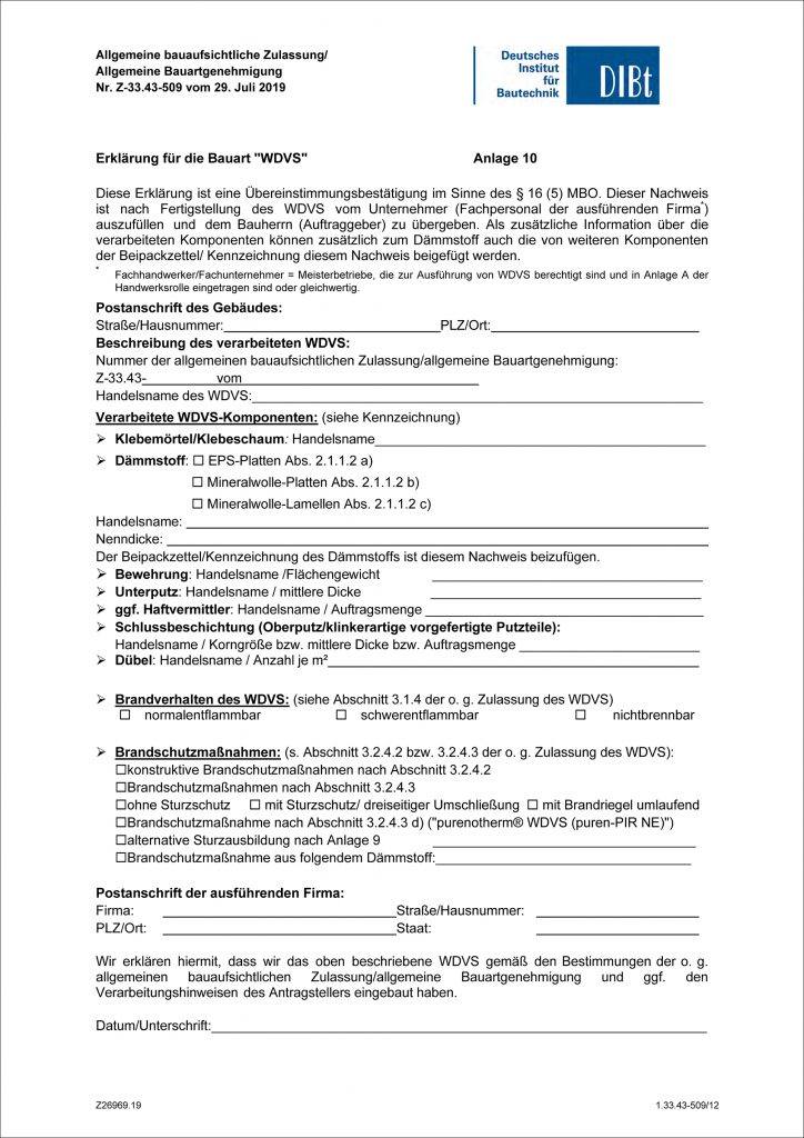 • Fachunternehmererklärung