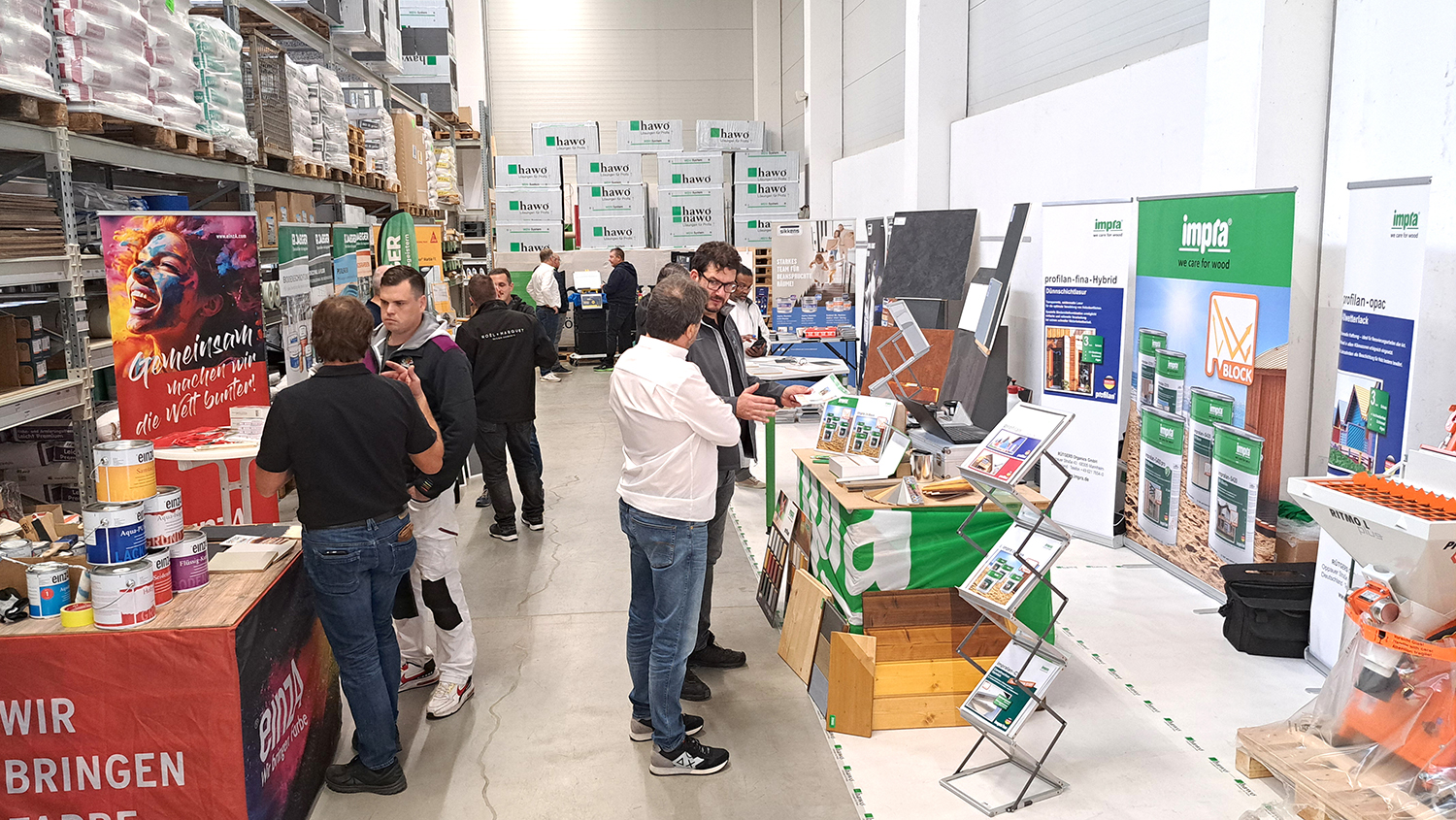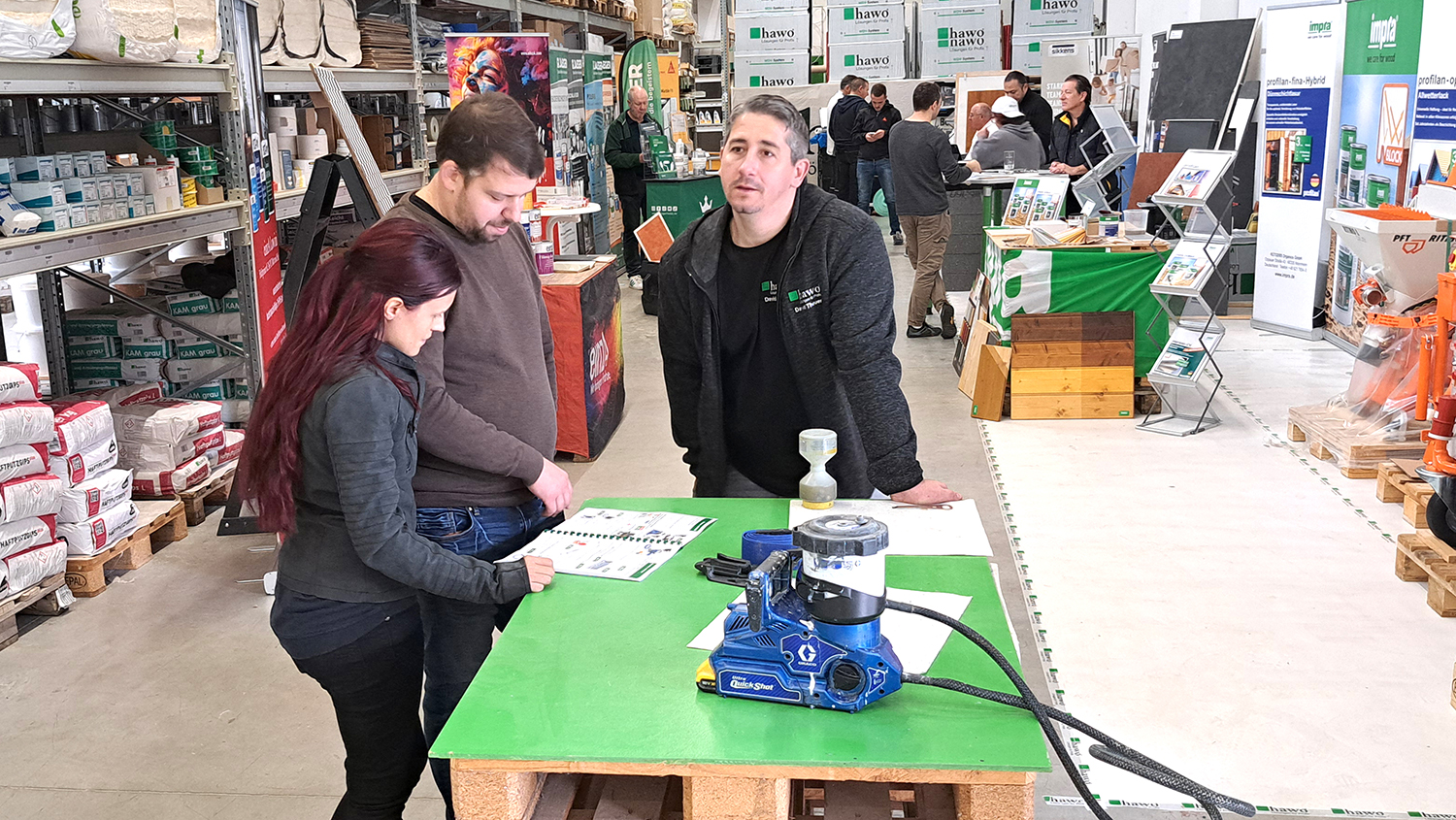 Renommierte Hersteller wie einzA, Impra, Valpaint, Jaeger, Sika, Bostik und Sikkens waren mit eigenen Ständen vertreten. Auch hawo selbst präsentierte spannende Neuheiten – von innovativer Airless-Spritztechnik bis hin zu kreativen Wandgestaltungslösungen.