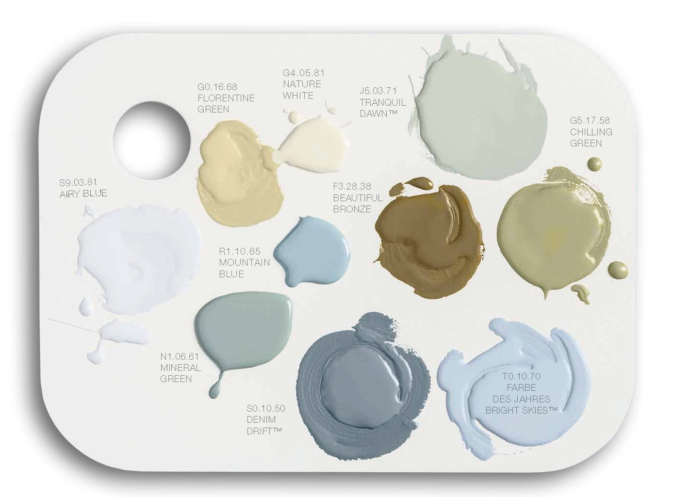 Farbtöne für Räume voller Vitalität. Die frischen Grün- und Blautöne holen die Natur in jedes Haus und schaffen eine positive Atmosphäre, in der man sich rundum wohlfühlt.