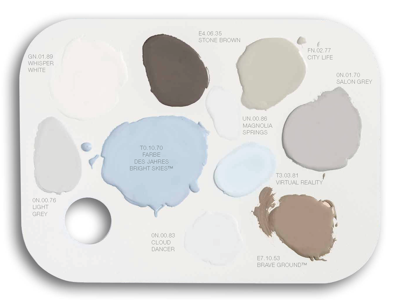Herzstück dieser 4 Farbtonpaletten ist die Farbe des Jahres Bright SkiesTM.