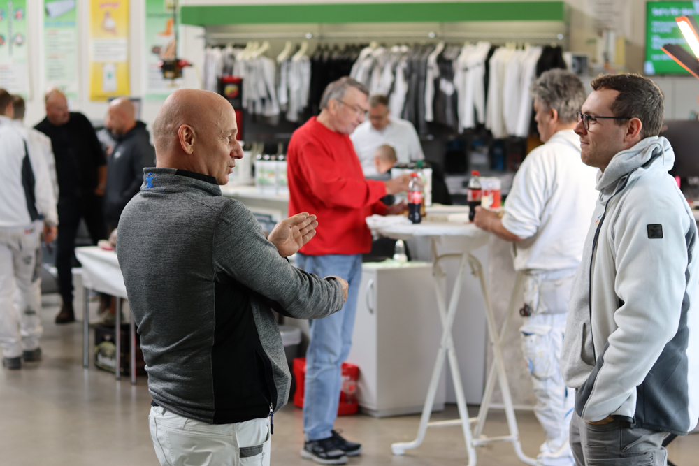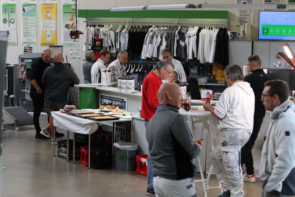 Trotz der langsam herbstlichen Stimmung war uns das Wetter beim Filialfest in Eschborn wohlgesonnen. Unsere Besucher konnten spannende Vorführungen erleben, darunter das Airlessgerät QuickShot von Graco, hochwertige Lasuren von einzA und WDVS-Lösungen für die perfekte Wärmedämmung. Dilip präsentierte außerdem kreative Techniken für beeindruckende Wandgestaltungen.