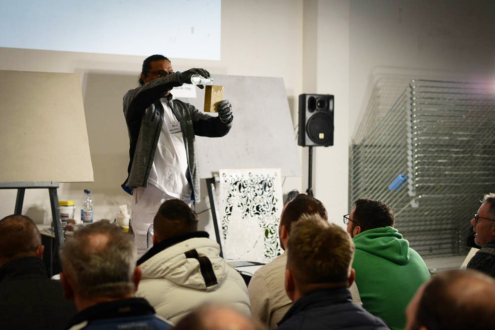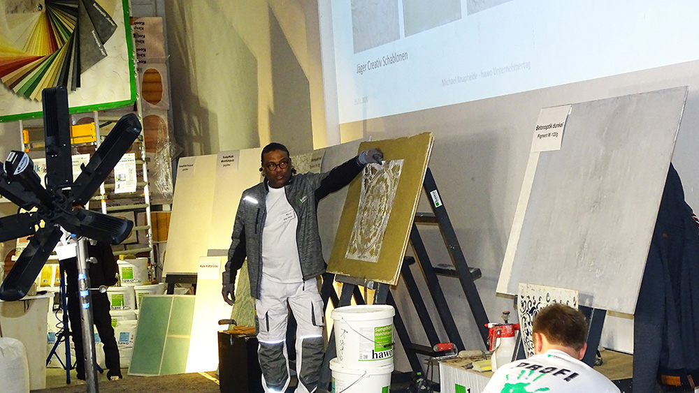Welch nahezu unendlich gestalterische Möglichkeiten diese Produkte ermöglichen und welche Optiken im Trend liegen, zeigten Dilip Silva unterstützt durch Marvin Bahadori bei ihren Produktvorführungen, insbesondere die Trend-Kreativ-Technik Betonoptik. Alle Teilnehmer erhielten viele nützliche Verarbeitungstipps und Gestaltungsanregungen.