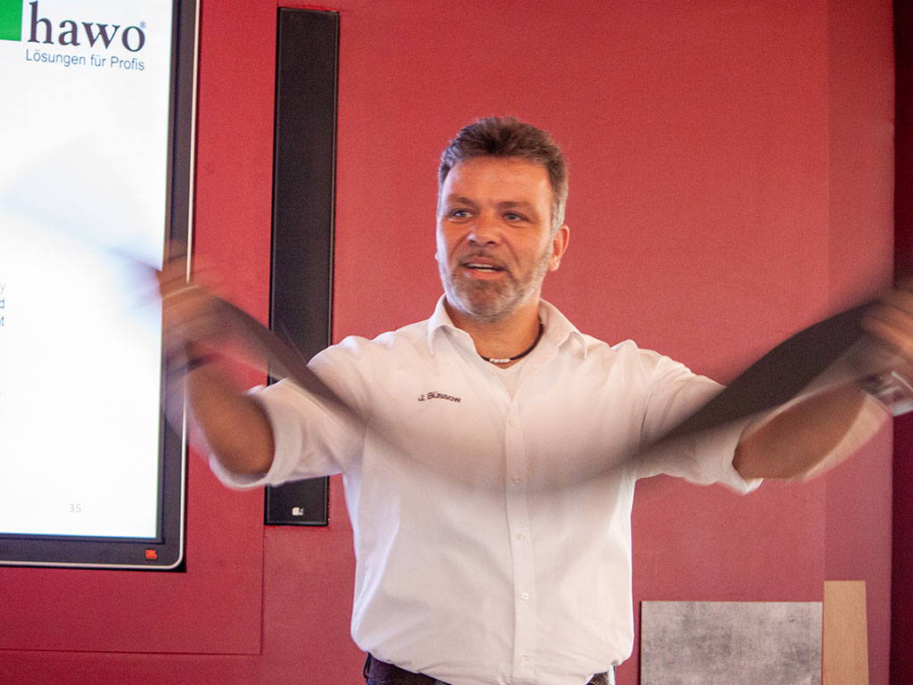 Michael Schneider von Bostik gab tiefe Einblicke zur richtigen Bewertung von Untergründen und deren optimale Vorbereitung für das anschließende Verlegen diverser Bodenbeläge.