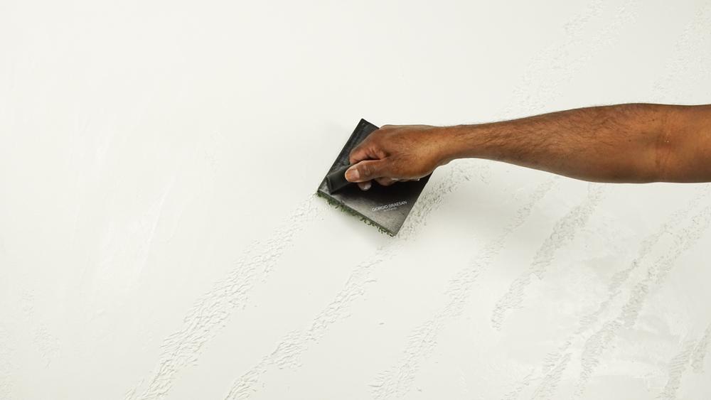 Schritt 2: Den frischen Creativ Modellierputz mit einer Strukturbürste mit leichtem Druck, diagonal strukturieren