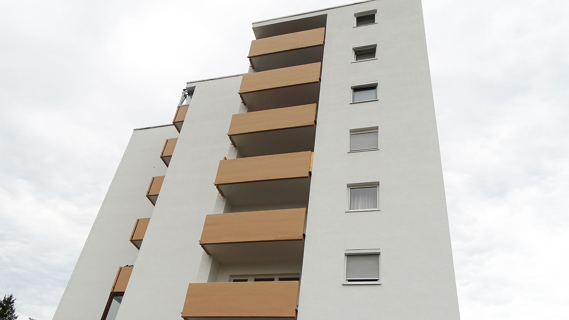 Mit diesen Argumenten überzeugte Malermeister Michael Diemer aus Helmstadt-Bargen den verantwortlichen Architekten Armin Morlock aus Sinsheim-Hilsbach, bei der Renovierung des Hochhauses, Richard-Wagner-Str. 21-23 in Eppingen die hawo DryClean Fassadenfarbe als Fassadenendbeschichtung einzusetzen.