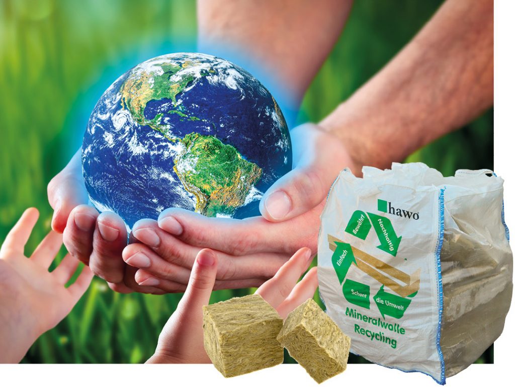Das Recyclen von Mineralwolleresten ist mit dem hawo Mineralwolle Recycling-System einfach und schont nachhaltig Ressourcen. Zurückgenommene Mineralwolle wird umweltgerecht recycelt und in den Produktionsprozess zurückgeführt.