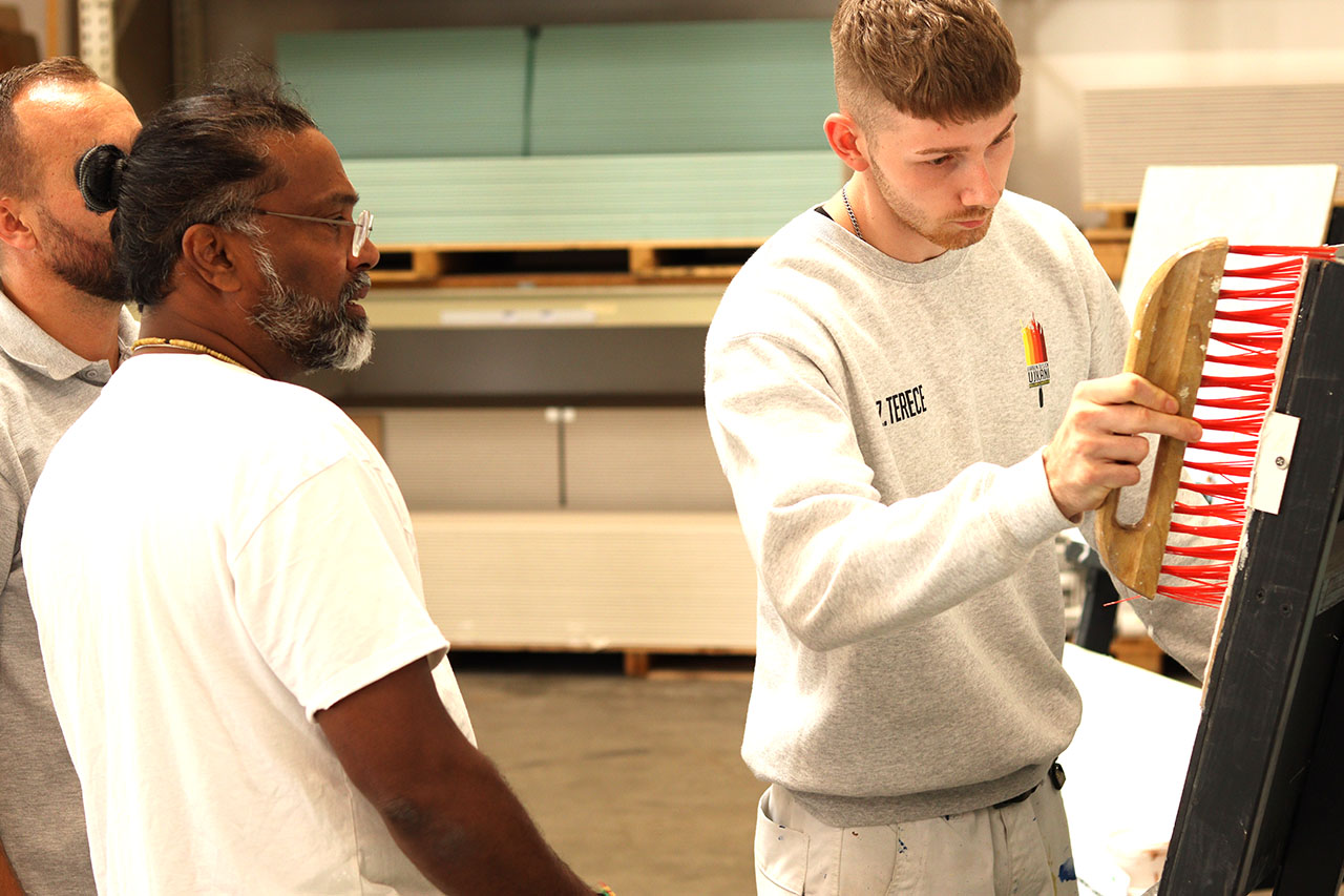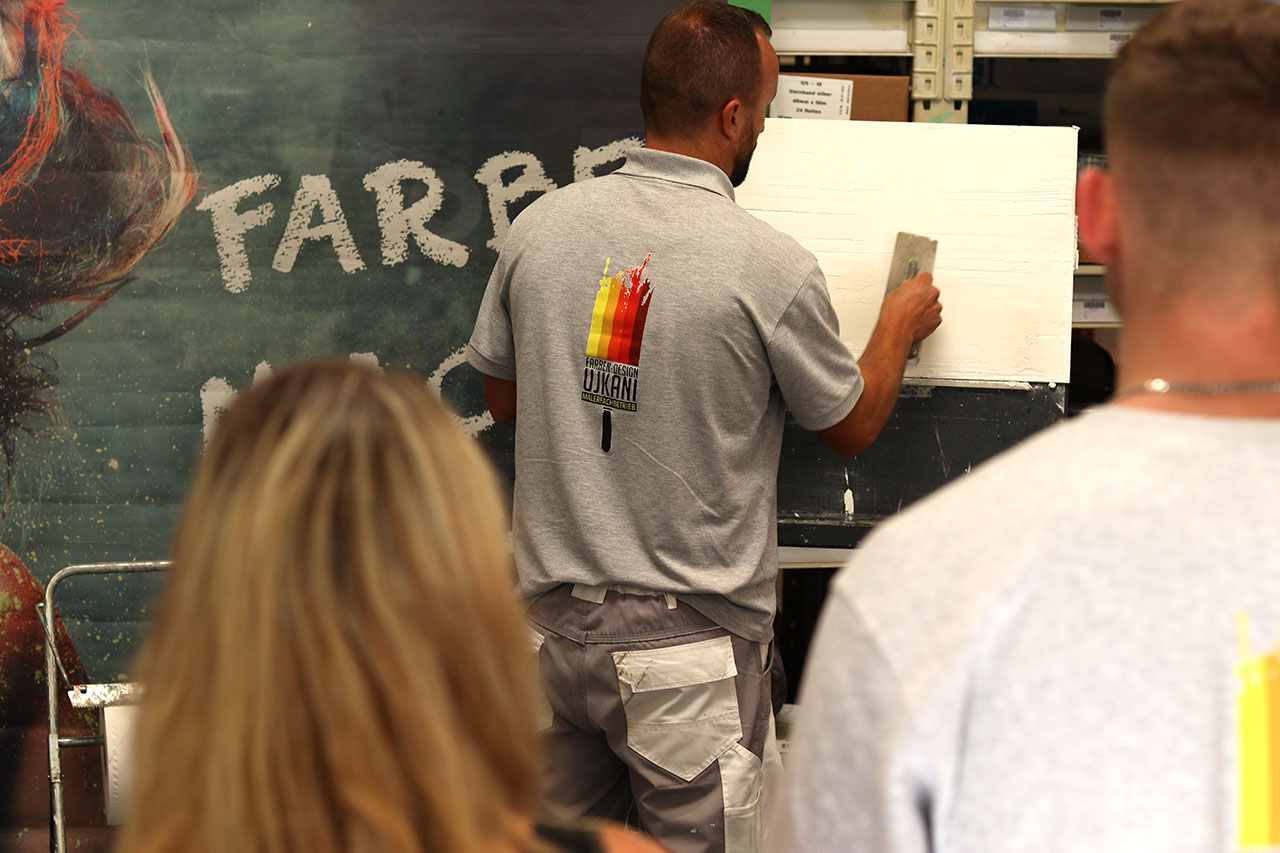 Wir hatten das Glück, erstklassige Aussteller bei uns zu haben. Die renommierten Unternehmen Flex und DeWALT präsentierten ihre neuesten Maschinen und Werkzeuge. Die Präsentationen von Dilip Silva, der kreative Techniken vorstellte, und Ahmet Eyüpoglu, der die bahnbrechende Graco Ultra Quickshot präsentierte, zogen die Aufmerksamkeit und Begeisterung der Besucher auf sich.
