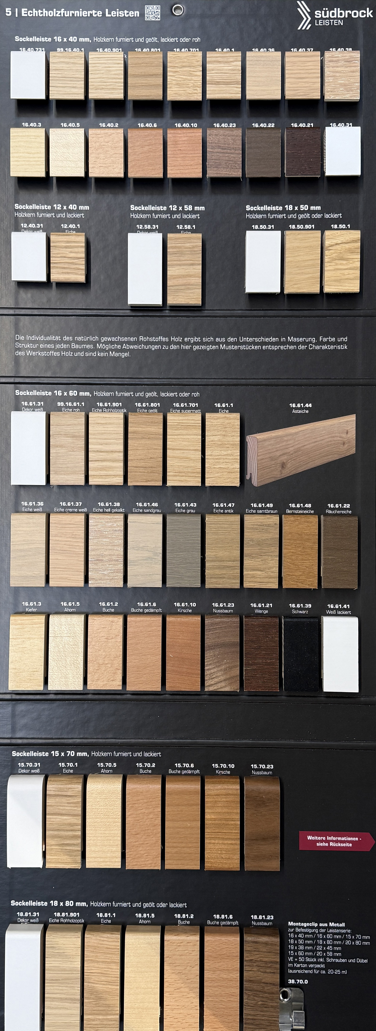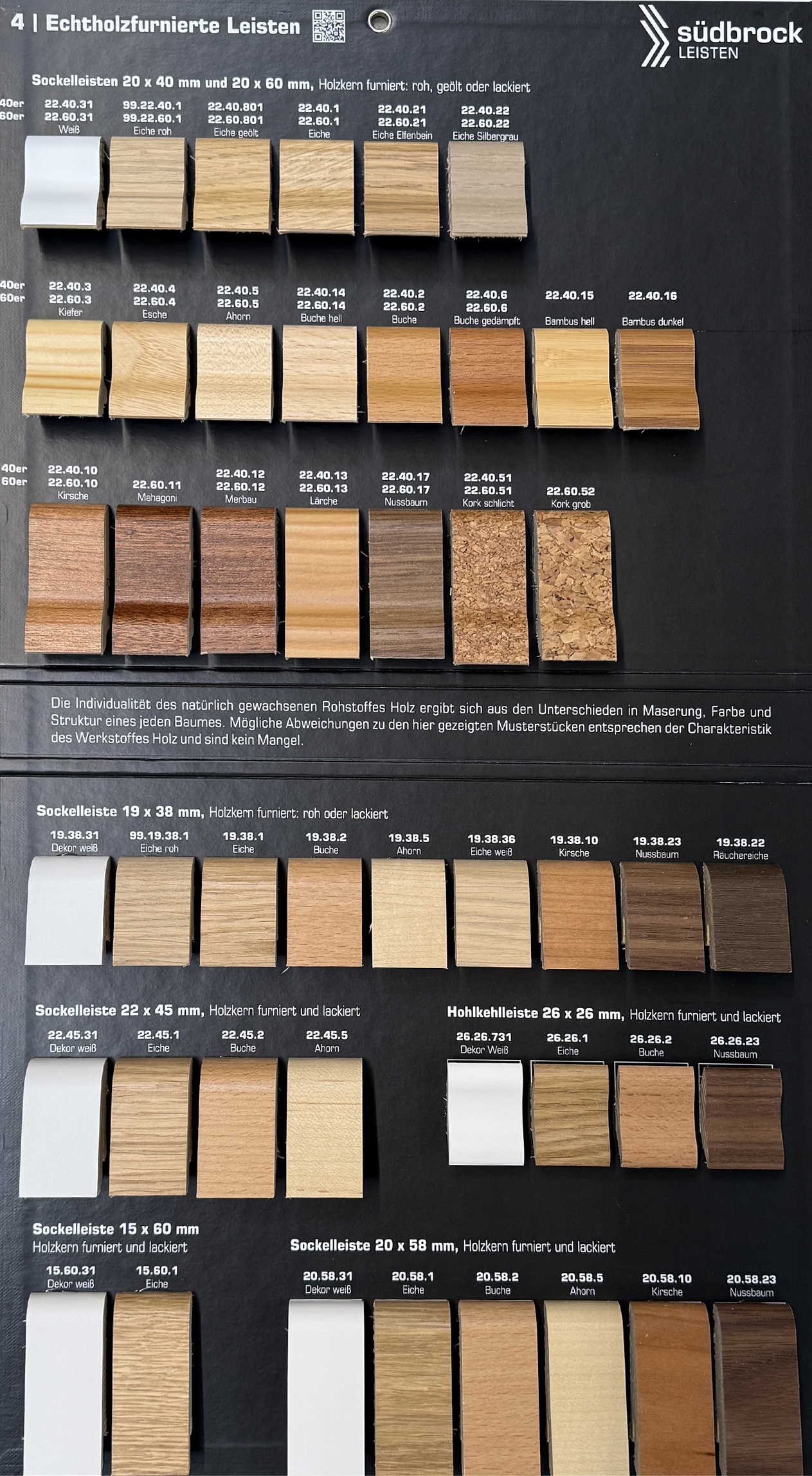 - Original‑Leistenmuster in verschiedenen Holzarten